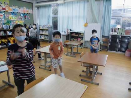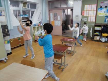 大空学級 朝のトレーニングでお手玉をしました。