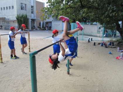 逆上がりやひざ掛け振りあがり,後ろ回りなど,新しい技にも挑戦しています。