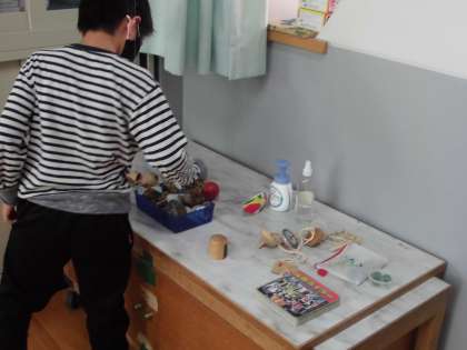 紙に書いてあるお題を読み,そのお題の物をとってきました。