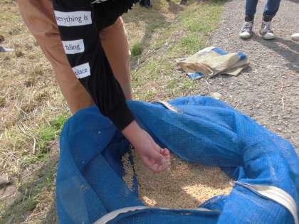 機械の中の籾も見せていただき,実際にさわらせていただきました。。
