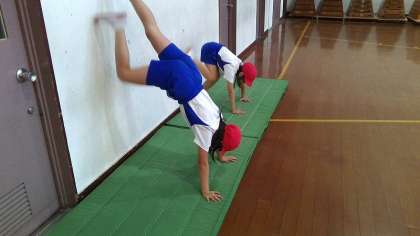 壁を使って倒立にチャレンジする子もいました。