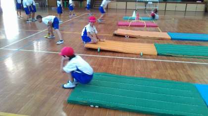 来週には体育の授業参観で,マットあそびを行います。