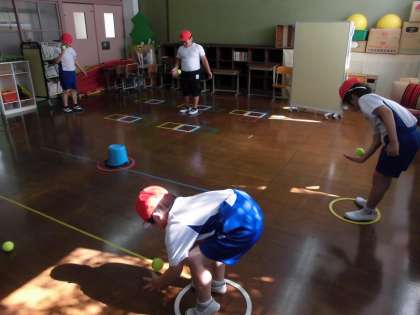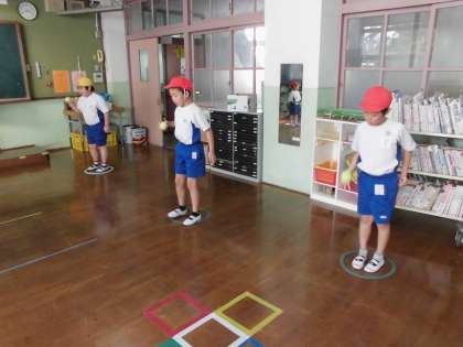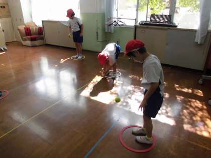 キャッチする運動をしました。はじめは,力加減が分からず,