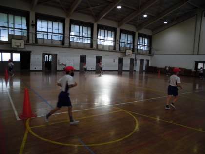 久しぶりの朝マラソンは,体育館で5分間走りました。