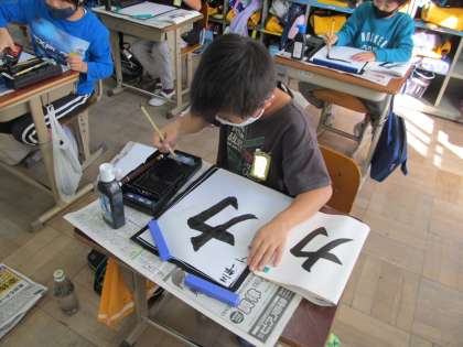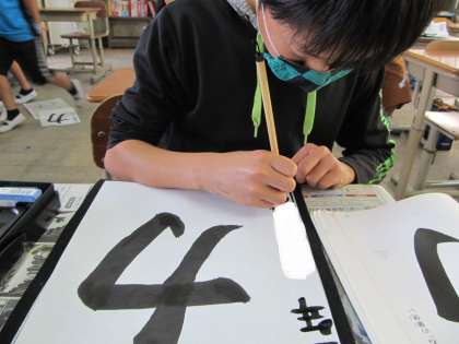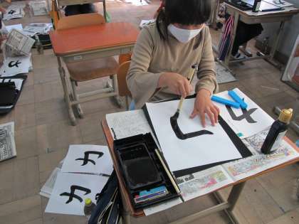 子どもたちは,姿勢を正し,心を落ち着けて,ていねいに書いていました。