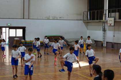 夕練に参加している5年生はたくさんいます。6年生の姿を見て頑張っています。そんな中,アップ中にお気に入りの曲が流れるとついつい踊りだしてしまう子も・・・。みんなで楽しく練習できることがいいですね。