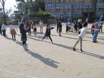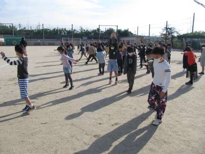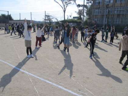 太陽が出ている良いお天気のときに,「かげつなぎ」をしました。