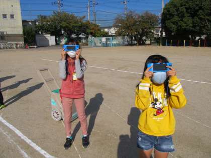 かげつなぎと一緒に,遮光板を使って,太陽を見ました。