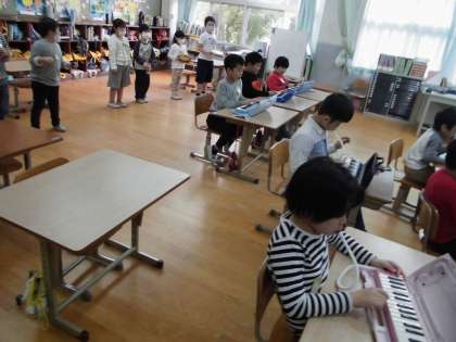 それぞれのパートに分かれ,懸命に練習に取り組んでいます。