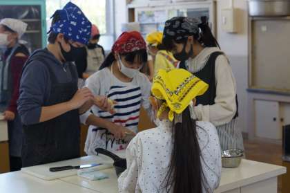 家庭科の調理実習がありました。色どり野菜炒めをつくりました。野菜の切り方や炒め方を気を付けました。