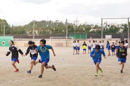 てきぱきとアップをしています。6年生としてかっこいい姿を見せてくれています。先頭で5年生を引っ張てくれる頼りになる6年生です。
