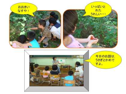 子どもたちの大好きな活動の一つに絵本の読み聞かせがあります。写真の読み聞かせは,お馴染みの「うさぎとかめ」のお話です。ただし,作者は大空学級の1年生なんですヨ!紙をほしいといったので渡すと,上手に描いてくれました。子どもたちに大うけで,みんなニコニコしながら聞いてくれました。とても楽しい「うさぎとかめ」になりました。