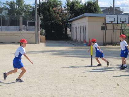 子どもたちは味方がアウトにならないように工夫して打ったり,どこで守っているとアウトにしやすいかを相談したりして,チームで勝利を目指し,頑張っていました。