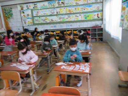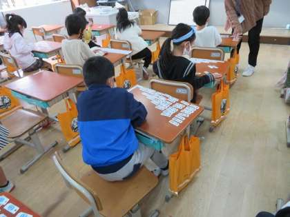 「すぐ見て答えが同じだから,答えの方で並べたよ。」