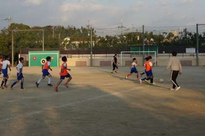 サッカー部では,先生と一緒に試合をしていました。秋風が冷たく気持ちがよい中,スポーツの秋を楽しんでいます。