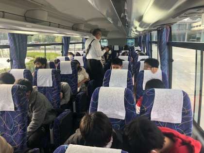 バスの中でもまだまだ元気で、友達と楽しい時間を満喫しています。