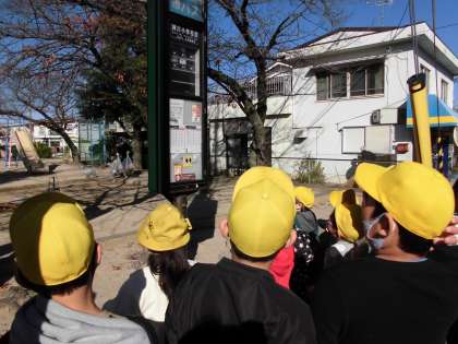 へ探検に行ってきました。この公園は学校の近くにあり,登校班で通