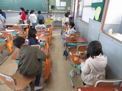 友だちの物を見たり,秋で集めた物を作ったりと