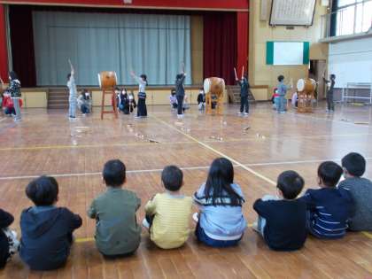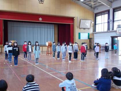 3年生の子どもたちは,地域に伝わる行事を受け継ぎ,張り切って演奏していました。