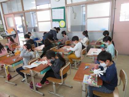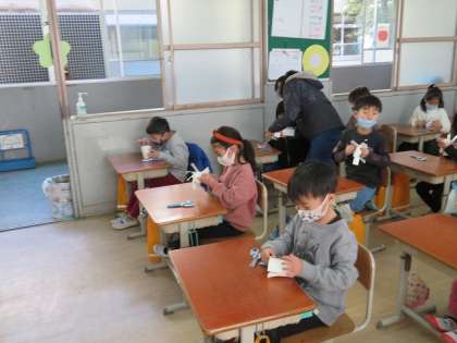 今日は,簡単な風車を作りました。