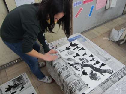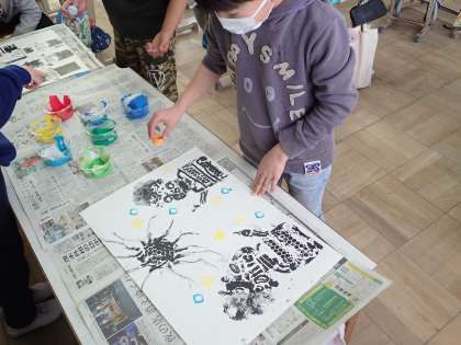 版づくりは大きさや体のバランス,表情などが難しかったですが,子どもたちは一生懸命取り組むことができました。