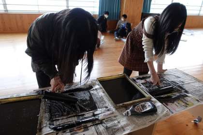 1回目の刷りの様子をみて,「次はもっとインクをつけてやろう。」「彫り残していたから,もう一度彫ってこよう。」と次の刷りに生かしていました。