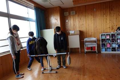 てこの原理の学習をしています。「なんか重い!」「軽くなったよ!」といろいろ試していると発見がたくさんありました。「どうして5キロの重さは変わらないのに,軽く感じたり,重く感じたりするんだろう。」とみんなでこれからの学習で問題を解決していきたいと思います。