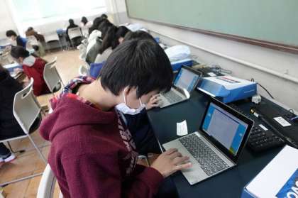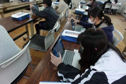 一人1台ずつパソコンを使って学習をしました。「今の世界は平和か」「今の日本は平和か」などいろいろなアンケートにもスムーズに答えていました。そのアンケートを使って,学習を深めています。