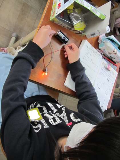 子どもたちは,どうつなげば,明かりがつくのか,いろいろ試していました。