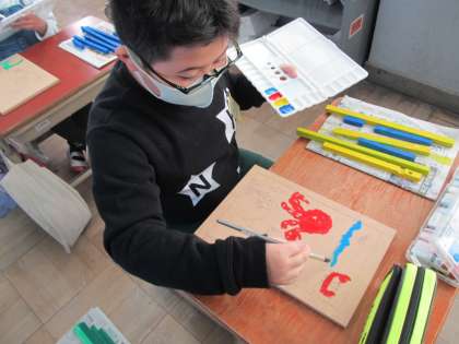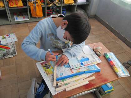 子どもたちは「○○の世界」をテーマに,自分のすきな世界を想像して描いていました。