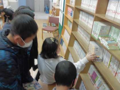 国語の学習でおすすめの本を紹介するために,図書室でおすすめの本を探しに行きました。