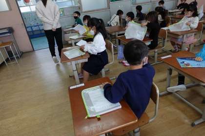 おたよりを配る,連絡袋に入れるということも頑張りました。