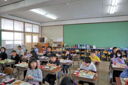 給食開始を楽しみにしていたようで,みんなの目がキラキラしていました。