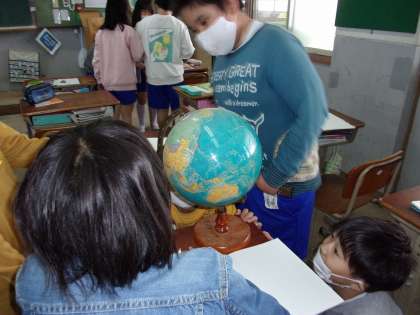 地球儀を見て,日本がどこにあるのかを探しました。