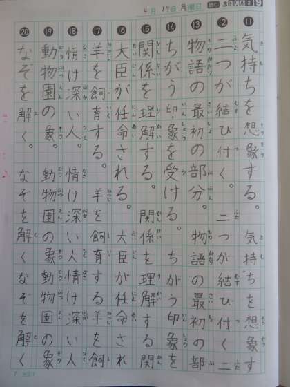 漢字の学習はノートを使って進めています。筆順や読み方に気を付けながら丁寧に取り組める子が増えてきました。ゆっくり・大きく・丁寧に書けるよう毎日の学習に取り組んでいきましょう。