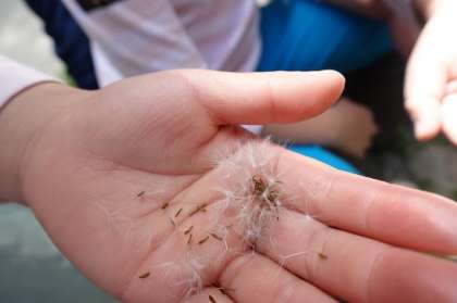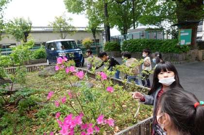 生活科で「はるみつけ」に出かけました。学校の中で「春」を探しました。