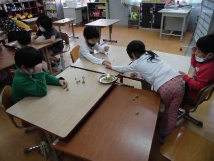 生活科でフウセンカズラの種を観察しました。「種にハートの模様がある」や「フウセンカズラを振ったらカラカラ音がする」など子どもたちからは様々な気づきがありました。その気づきを観察カードに文章と絵で上手にまとめられていました。