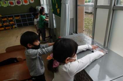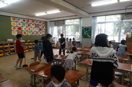 6年生も「こうするんだよ。上手。」と優しく教えてくれます。最近は自分達でもできるようになってきました。