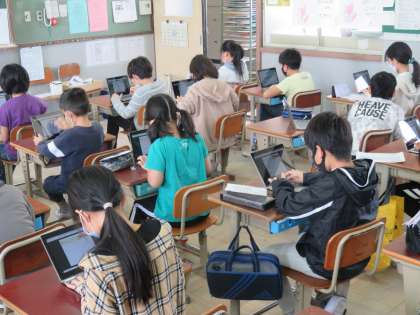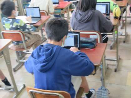授業で使用しているタブレット端末の入力を早くするために,タイピング練習に取り組みました。入力し終わると,最後に結果が表示されます。ミスを少なく,速く打ち込むことができると「A」ランクになるようです。ですが,なかなか「A]の壁は高く,「難しい・・・」と何度も挑戦していました。