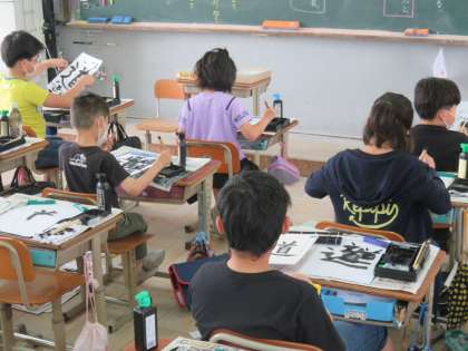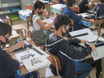 書写の時間には,「道」という漢字にチャレンジしました。一文字なのでバランスが難しかったようです。穂先の動きを意識して書きました。