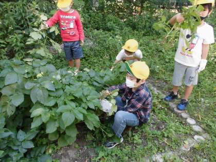 昨年度に植えたジャガイモを収穫しました。大空の子たちの愛情がたっぷり詰まったジャガイモがたくさんとれました。とれたジャガイモはみんなで分けて持って帰りました。