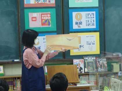 学校図書館支援員の池端先生に図書室の使い方や,ラベルの読み方についてお話を聞きました。