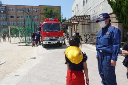 普段は詳しくみることのできない消防車のことも教えてくださり,とても楽しい時間でした。ありがとうございました。