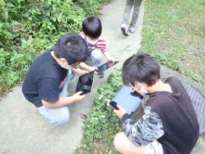 見つけた植物や生き物の写真を撮って,みんなでどんな生物を見つけたか,共有しました。