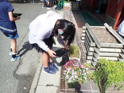 理科では,GIGA端末を持って,春の生物を探しに行きました。