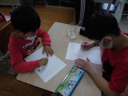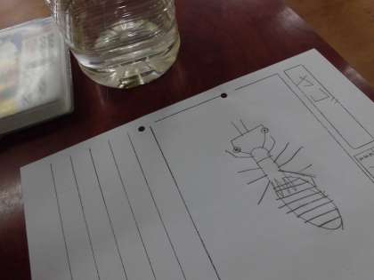 大空学級では毎朝ヤゴにあかむしをあげて食べる様子を観察しています。今日の生活ではヤゴの体のつくりを観察し,用紙に気づいたことをかきました。「足が6本ある」「おなかが赤い」など様々な気づきがありました。