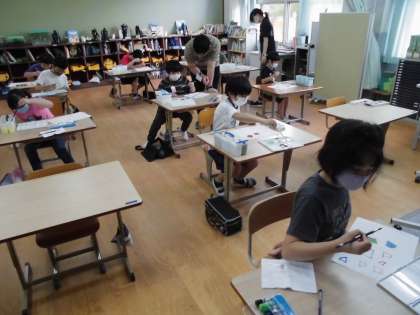 絵の具を混ぜていろんな色を作りました。自分の絵の具セットを使っての活動は初めてだったのでみんなわくわくしながら取り組んでいました。