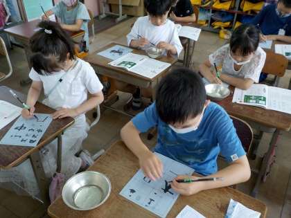 水書用筆を手に持つと,とても良い姿勢で,ゆっくりと丁寧に書くことができていました。