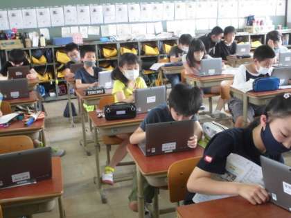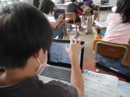 音楽科では,今歌うことやリコーダーを吹くことができないので,GIGA端末を使って旋律づくりをしました。