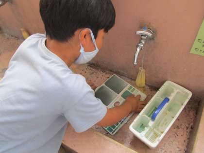 今日も絵の具のパレットを洗うときに水をとめ,節水していました。大切な水を大事に使いたいです。